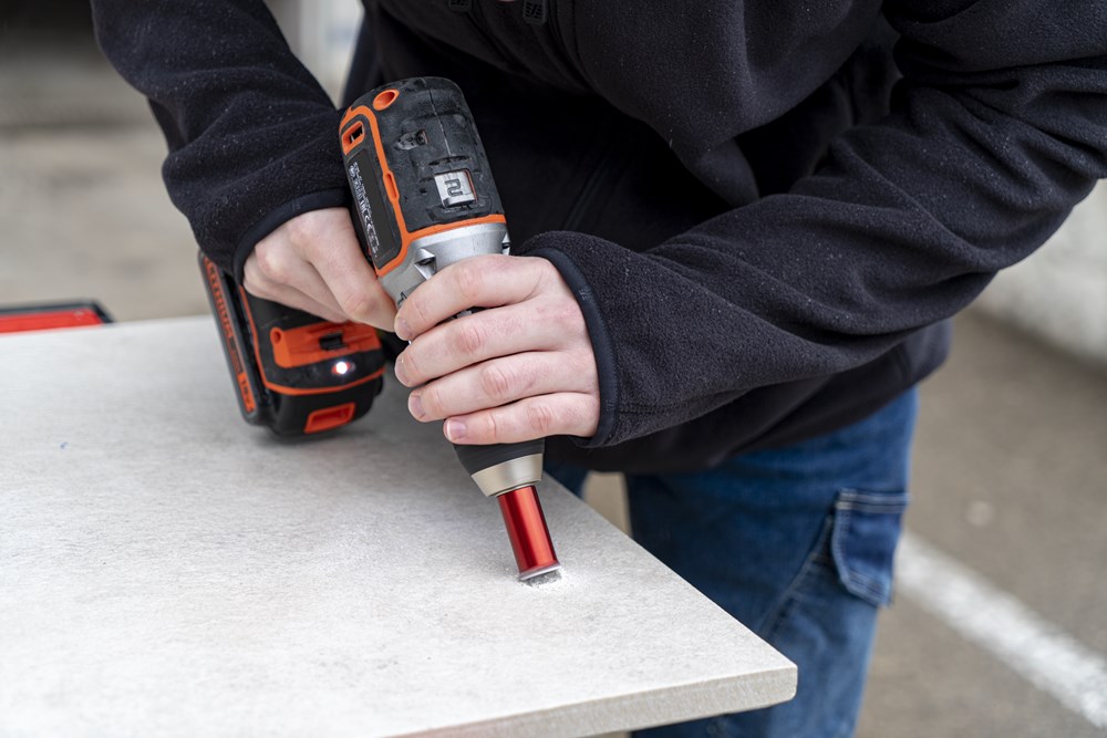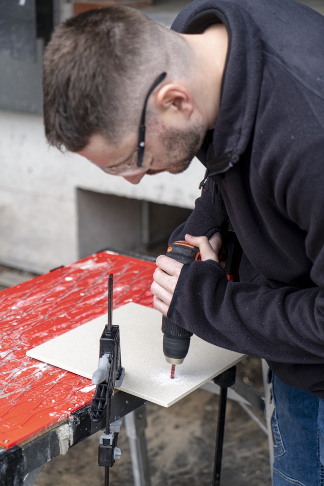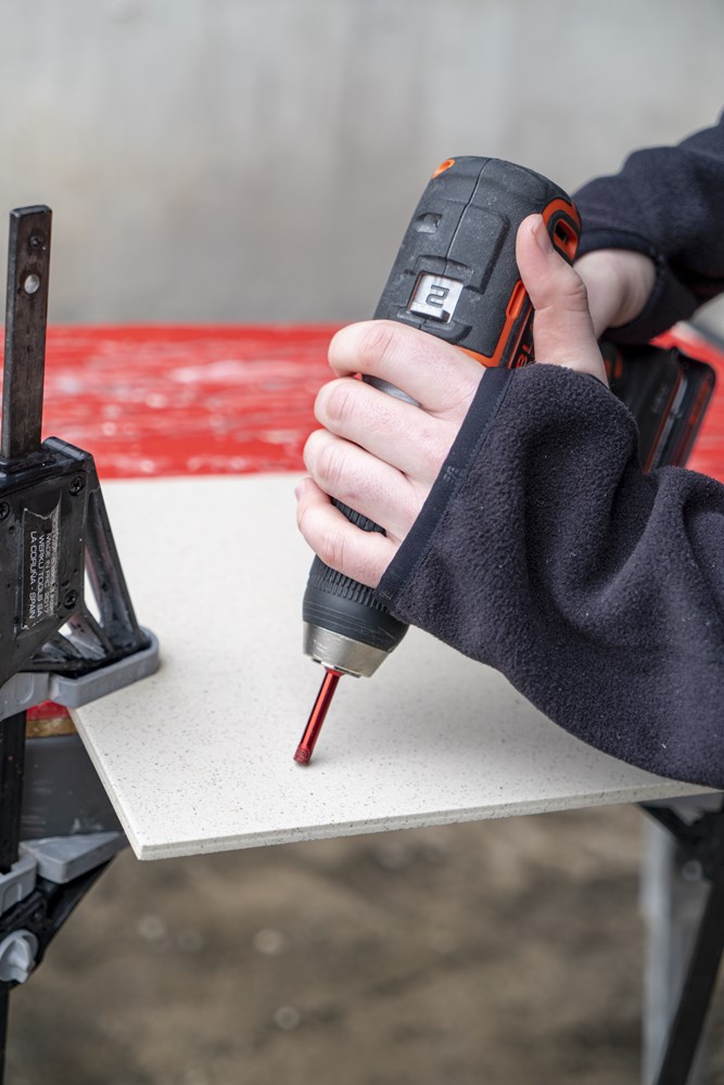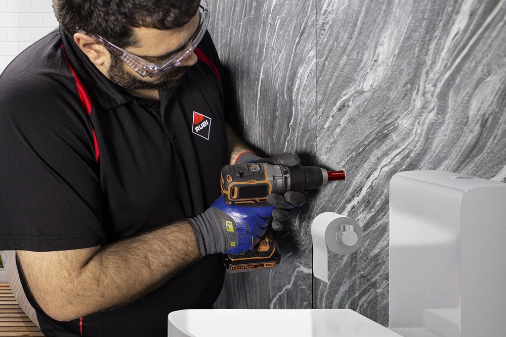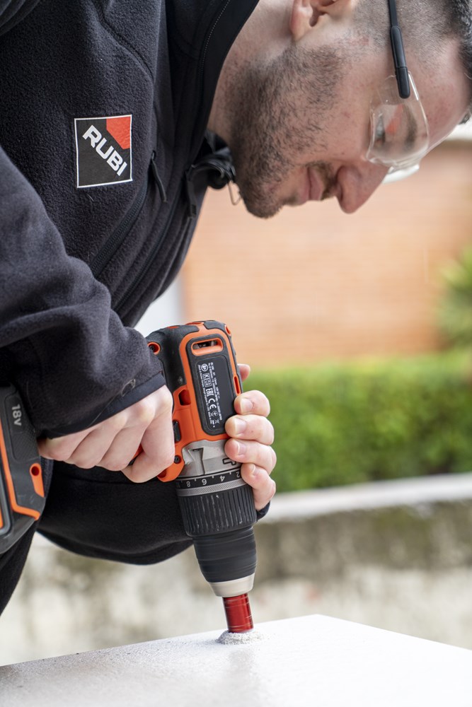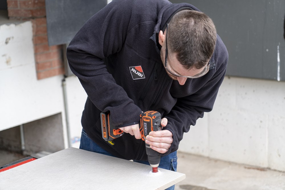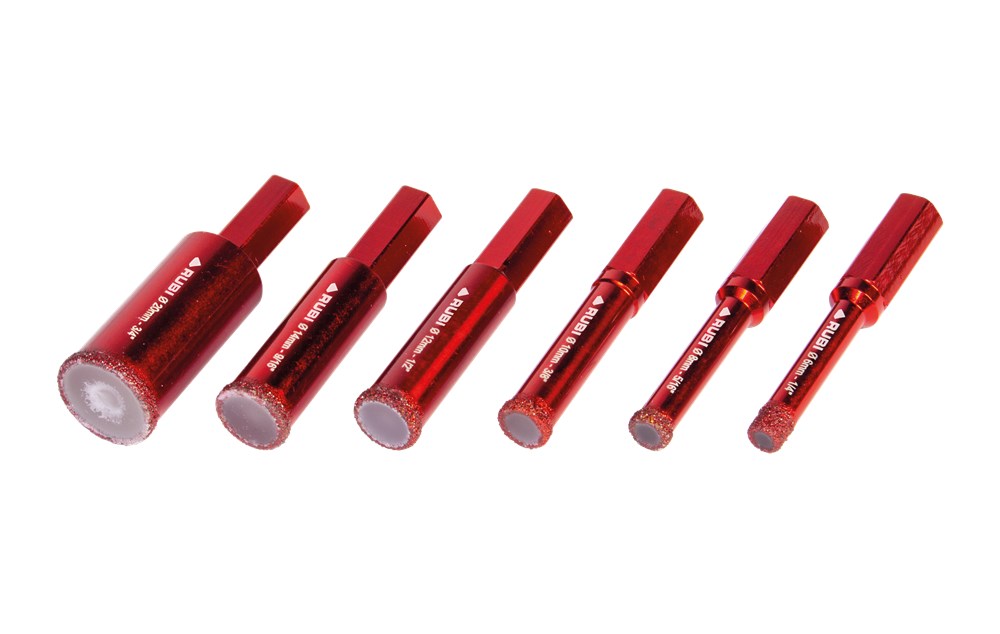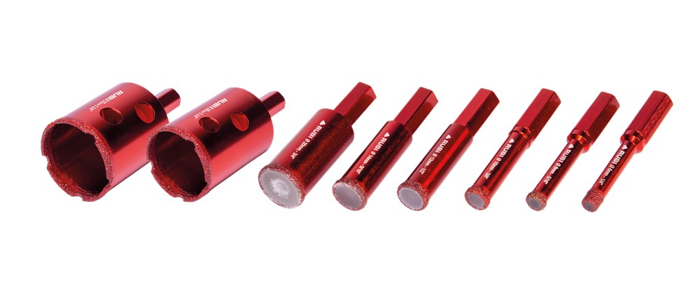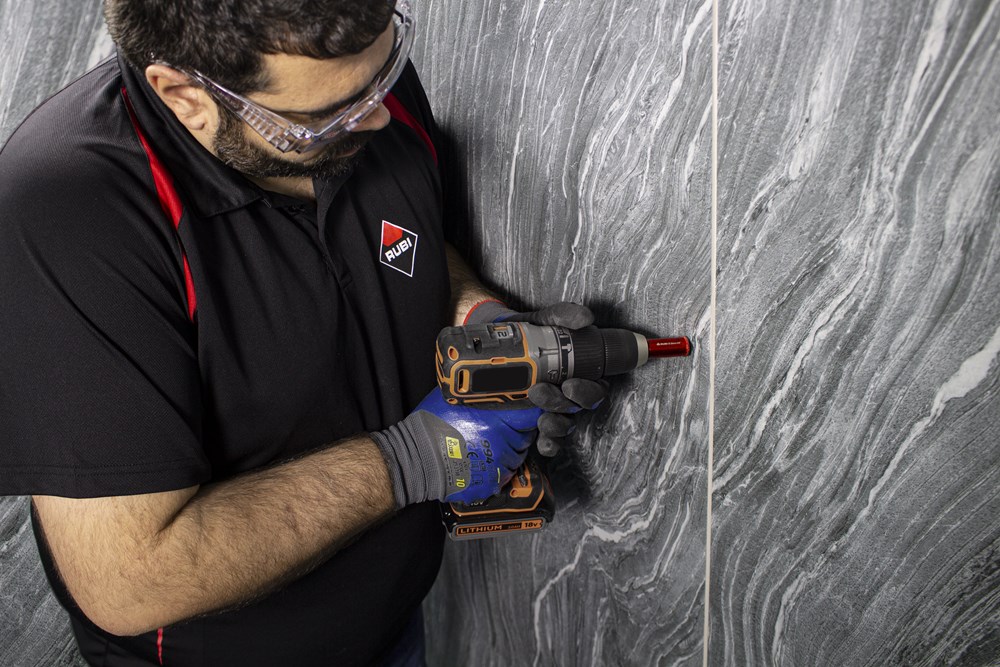 Binnen het assortiment diamantdroogboren heeft RUBI de DRYGRES 4DRILL boren. Het assortiment DRYGRES 4DRILL diamantboren wordt aanbevolen voor het boren van alle soorten keramische tegels, met name die van porseleinsteen en andere bekledingsmaterialen zoals marmer en graniet. In het assortiment van DRYGRES 4DRILL boren heeft RUBI gebruik gemaakt van de vacuümlastechniek VACUUM BRAZED, die de weerstand tegen temperatuur en wrijving verhoogt, om de diamantdeeltjes aan het booroppervlak te fixeren. DRYGRES 4DRILL boren zijn perfect voor het plaatsen van badkameraccessoires of elk type decoratief accessoire op keramische oppervlakken en/of natuursteen.DRYGRES 4DRILL diamantboren zijn ontworpen om uitsluitend te worden gebruikt met een elektrische boormachine met of zonder snoer, altijd ZONDER klopstand. Door hun zeshoekige verbinding kunnen ze zich snel aanpassen aan 13 mm boorkop.De boordiepte van DRYGRES 4DRILL boren is 36 mm voor de diameters 6, 8 en 10 mm. En 40 mm diep voor de boren met een diameter van 12, 14 en 20 mm. Alle DRYGRES 4DRILL boren bevatten wax. Deze wax smelt tijdens het gebruik van de boor en vergemakkelijkt de koeling en de afvoer van de boorresten (als de wax op is, kun je gewoon blijven boren. Alleen als al het diamant eraf is, dan kan de boor niet meer gebruikt worden). Versterkte basis met een aan te draaien schroef waardoor de wax op de tip van de boor blijft zitten.Omdat het een droogboor is, is het voor een juiste koeling van de boor noodzakelijk om tijdens het boren een lichte en constante pendelende beweging te maken en de resten van het materiaal tussentijds te verwijderen.DRYGRES 4DRILL boren, van RUBI, hebben een systeem dat het verlies van wax aan de achterkant van de boor blokkeert, waardoor de wax, altijd op de punt, geconcentreerd wordt en smering tijdens het boren verzekerd is.De aanbevolen minimumsnelheid voor DRYGRES 4DRILL diamantdroogboren is 1000 rpm. Voor een betere afwerking en een langere levensduur van de boor is het belangrijk om de juiste rotatiesnelheid te respecteren en een lichte pendelende beweging te maken tijdens het boren, en om ervoor te zorgen dat er na het boren geen resten van het geboorde materiaal in de boor achterblijven